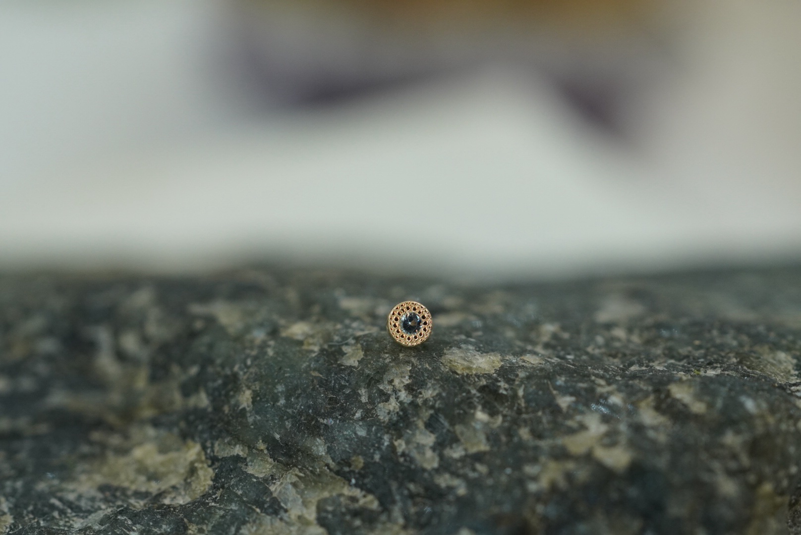 2,5mm geel gouden threaded end met een 1,25mm Zwitsers Blauwe topaas.