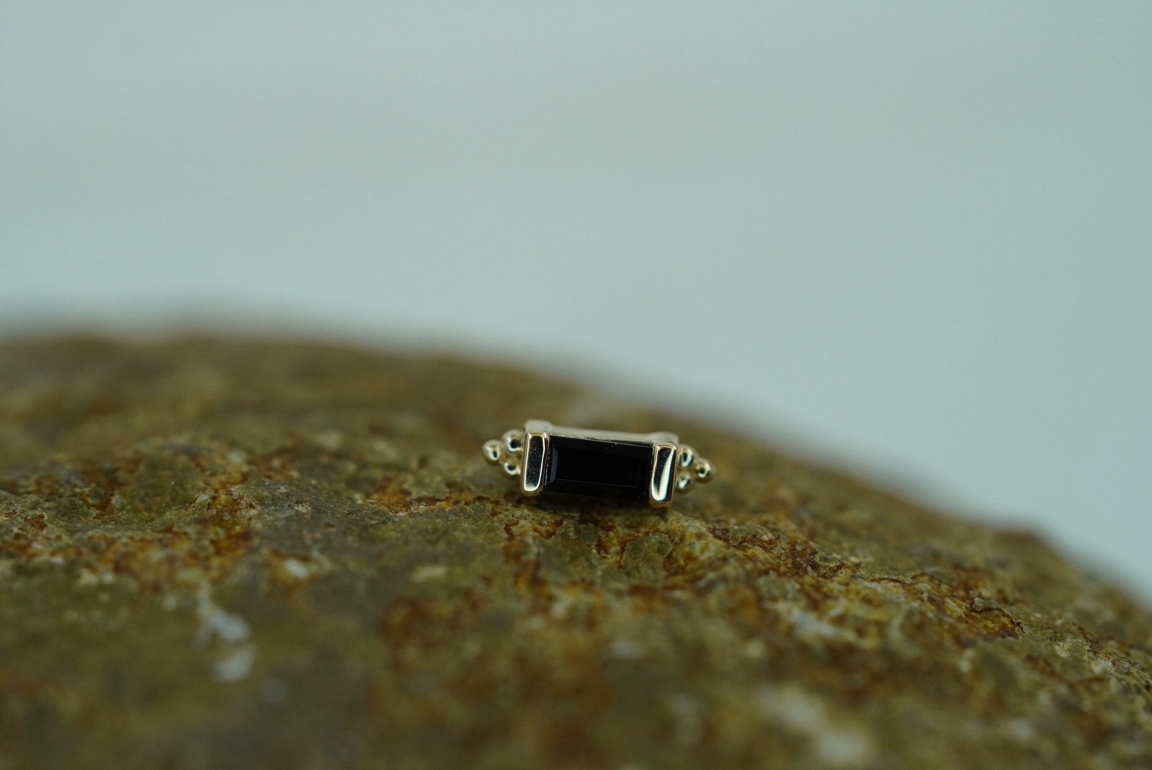 Massief geel gouden threaded end met een 3×1,5mm Onyx.